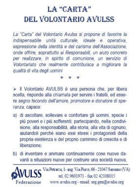 Vi trovate in Federazione AVULSS ODV/Home/ Modulistica/ Moduli ass.ne/ La Carta del Volontario
